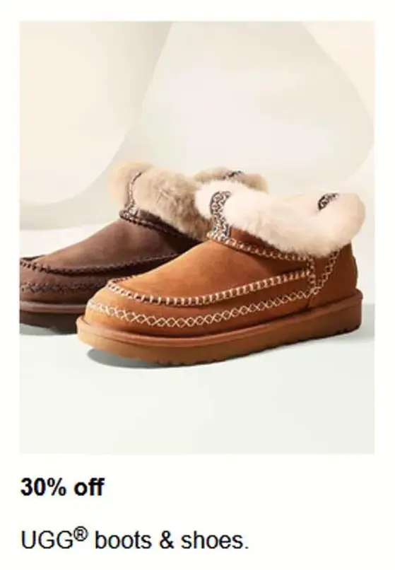Hurry, limited time only! Shop in store and get 30% off UGG® boots & shoes.
